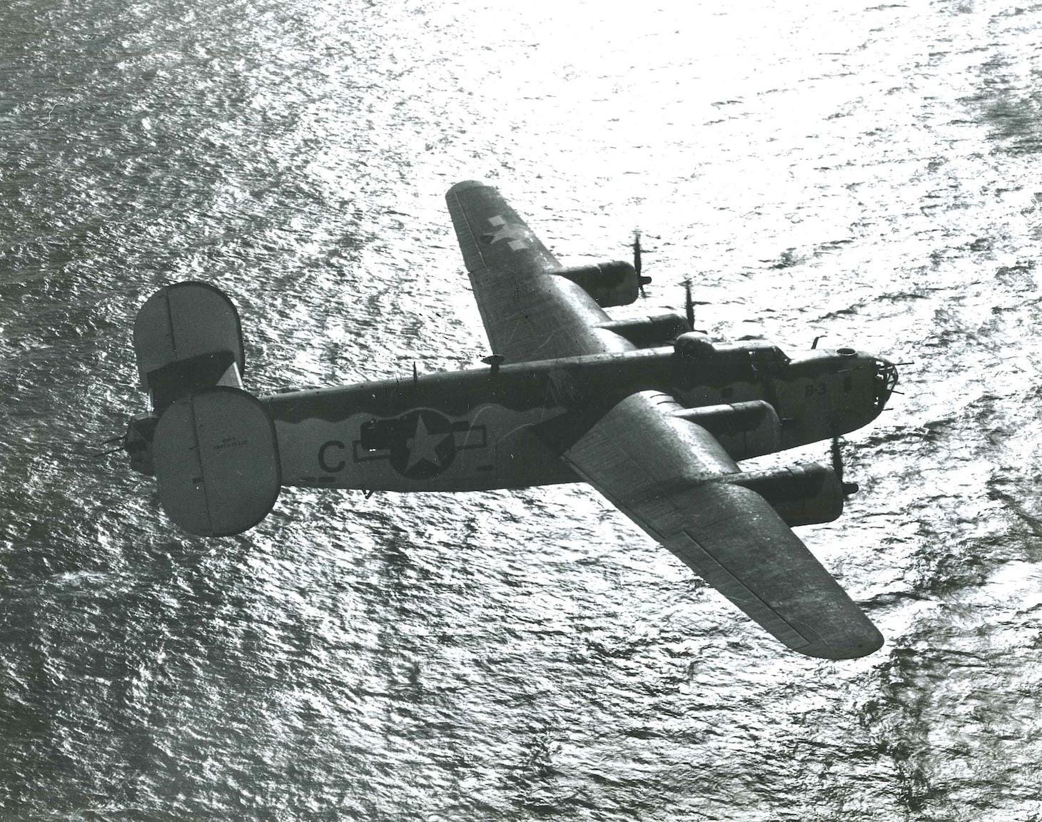A PB4Y-1 “Liberator” airplane flies over the Bay of Biscay in November 1943. (US Navy)