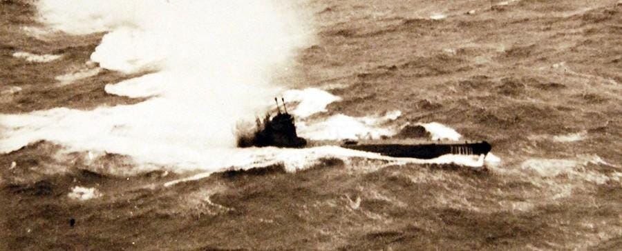 German submarine, U-271, under attack, January 1944 (U.S. Navy)