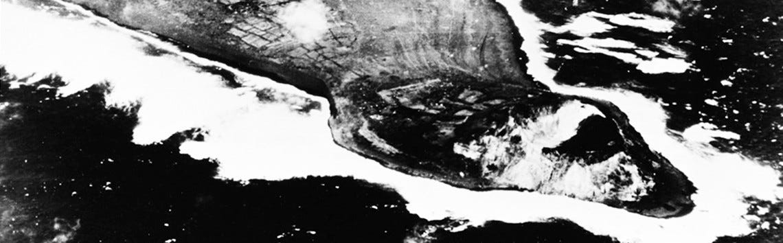 In February 1945, a formidable armada—eight battleships, five heavy cruisers, three light cruisers, and ten destroyers—gathered off a small volcanic island just 650 miles from Tokyo: Iwo Jima, the crucial link on the bomber route between Tokyo and the Marianas.