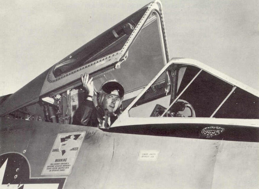 At 40,000 feet (12,192 meters), Rogers executed two supersonic passes, clocking an average speed of 2,455.736 kilometers per hour (1,525.924 mph)—an incredible Mach 2.31. For this accomplishment, he received the Distinguished Flying Cross, the FAI Henry De La Vaulx Medal, and the prestigious Thompson Trophy.