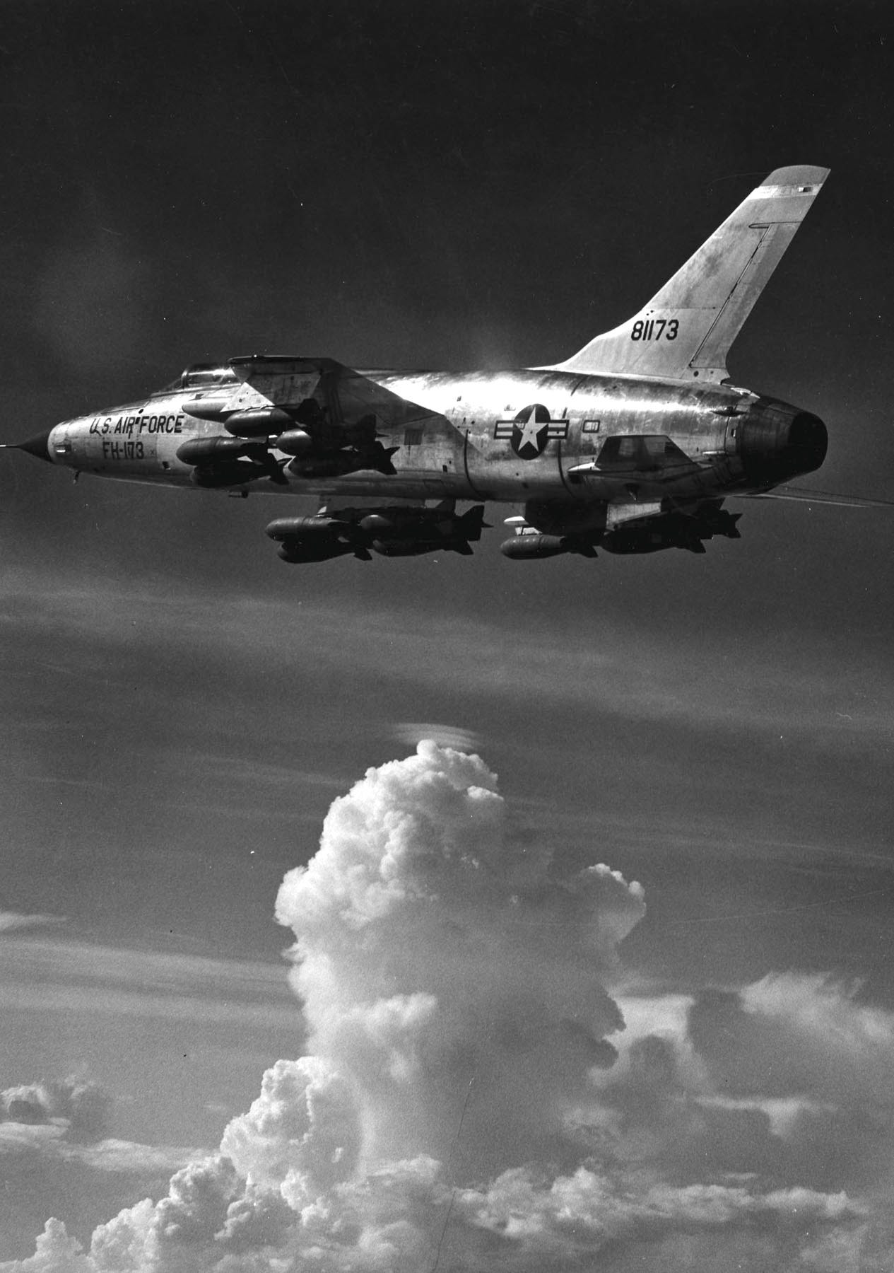 22 October 1955: Over the skies of Edwards Air Force Base in California’s high desert, Republic Aviation test pilot Russell M. “Rusty” Roth took the first YF-105A prototype, serial number 54-098, for its maiden flight. Though it was powered by an underperforming Pratt & Whitney J57-P-25 engine, the aircraft still managed to reach Mach 1.2 in level flight—a promising start for what would become an iconic aircraft.
