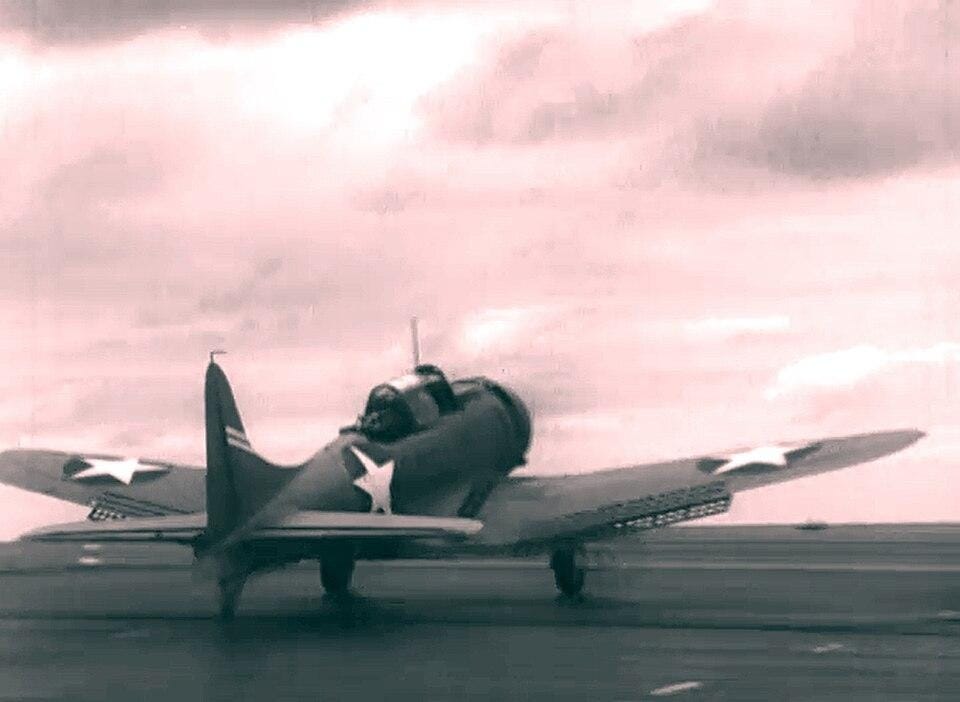December 1941: USS Enterprise, through Dauntless, sank a Japanese Submarine
